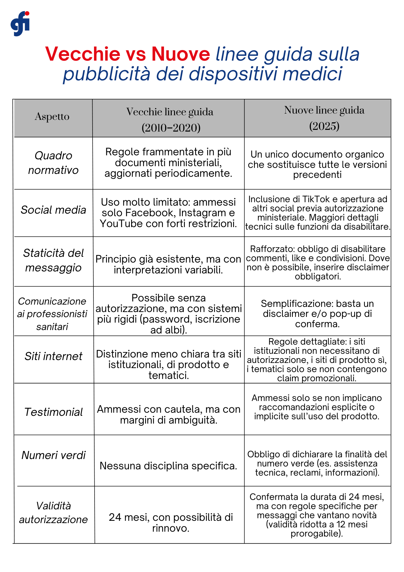 Fonti: Ministero della Salute – Linee guida sulla pubblicità sanitaria dei dispositivi medici, dispositivi medico-diagnostici in vitro e presidi medico-chirurgici (02 aprile 2025). Documento ufficiale che sostituisce tutte le precedenti linee guida del 2010, 2013, 2017, 2019 e 2020