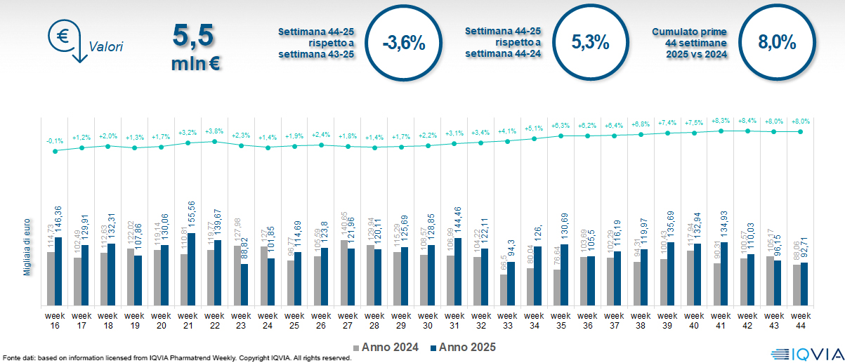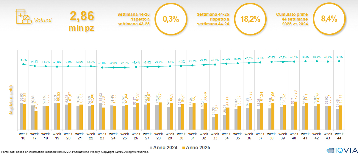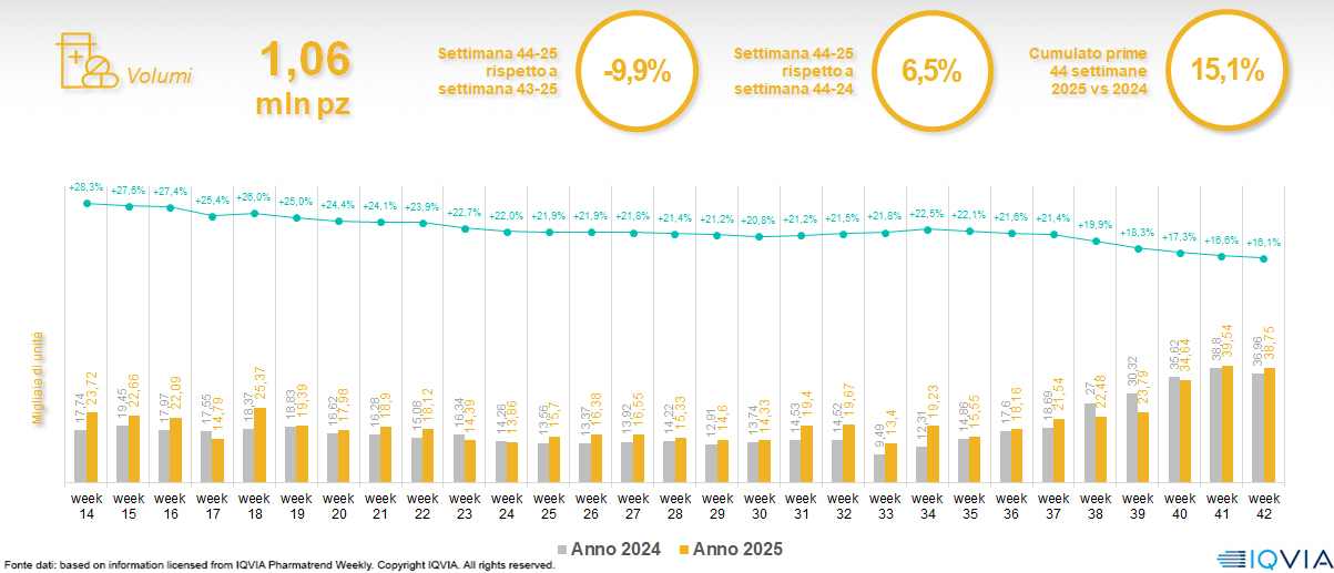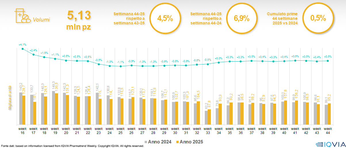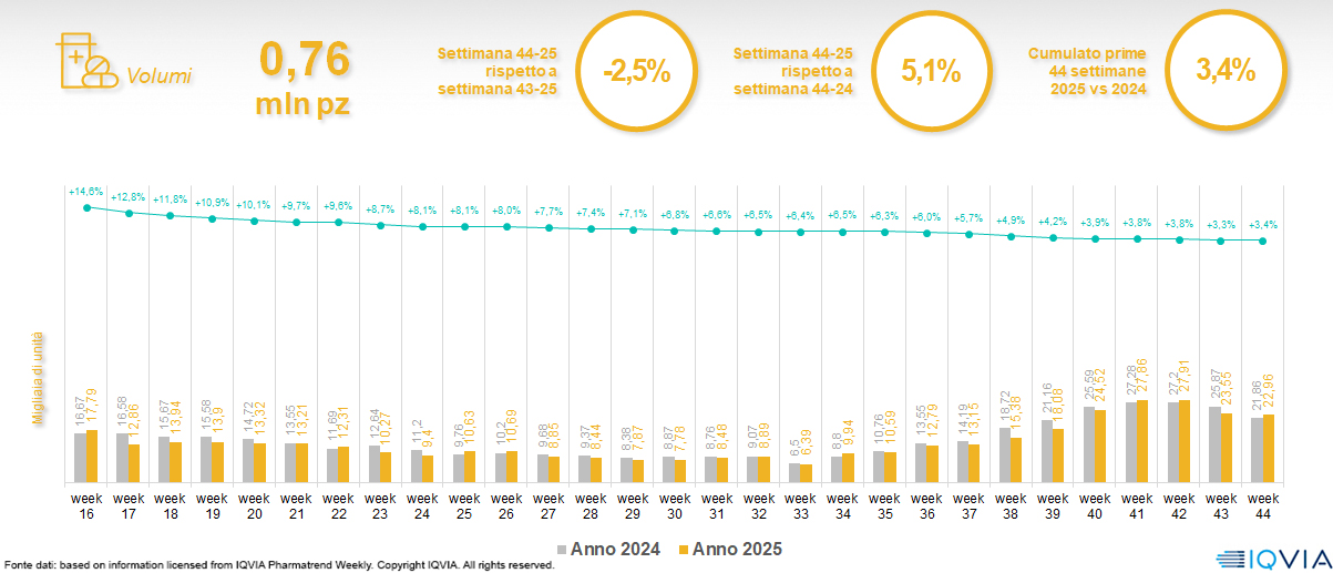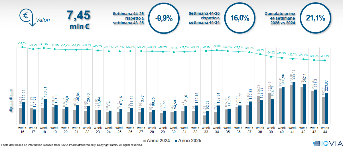 Il mercato online della farmacia alla 44ª settimana del 2025