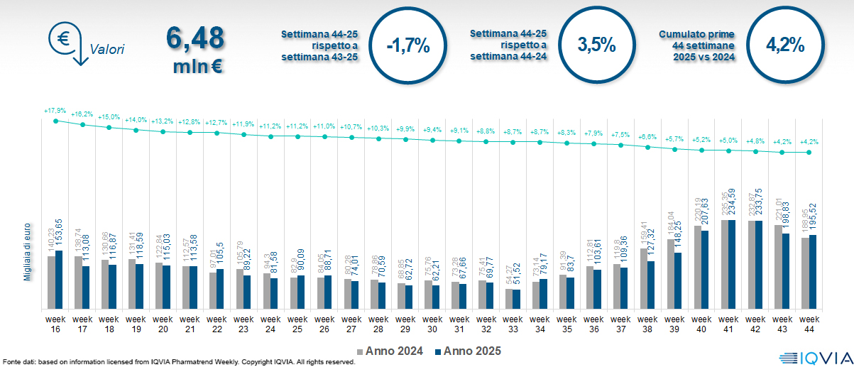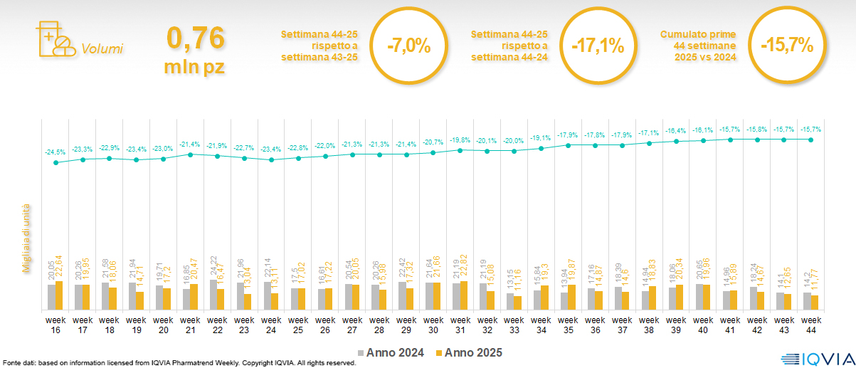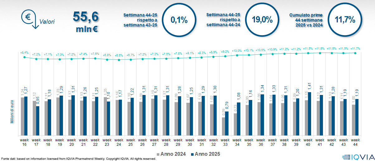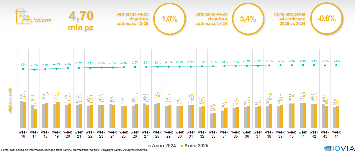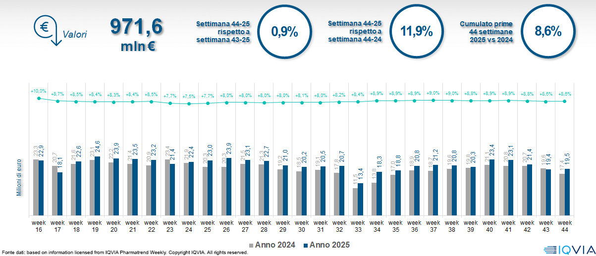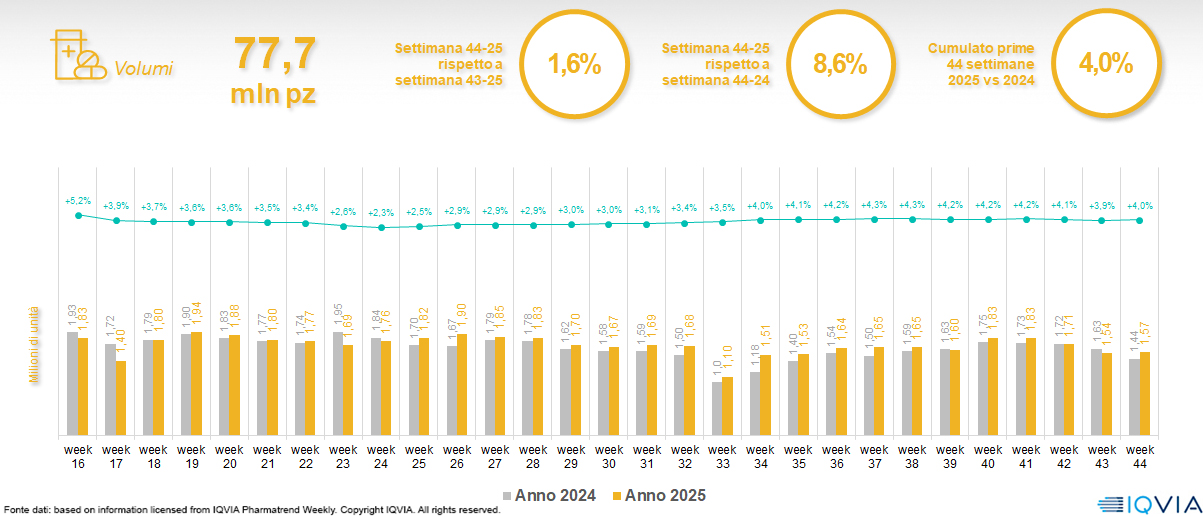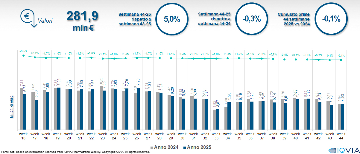 Il mercato online della farmacia alla 44ª settimana del 2025
