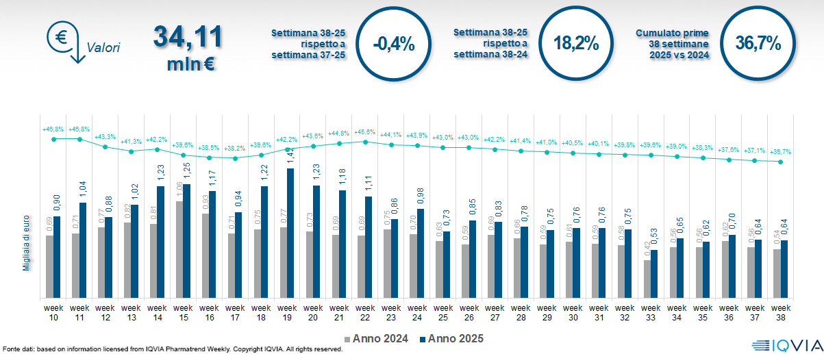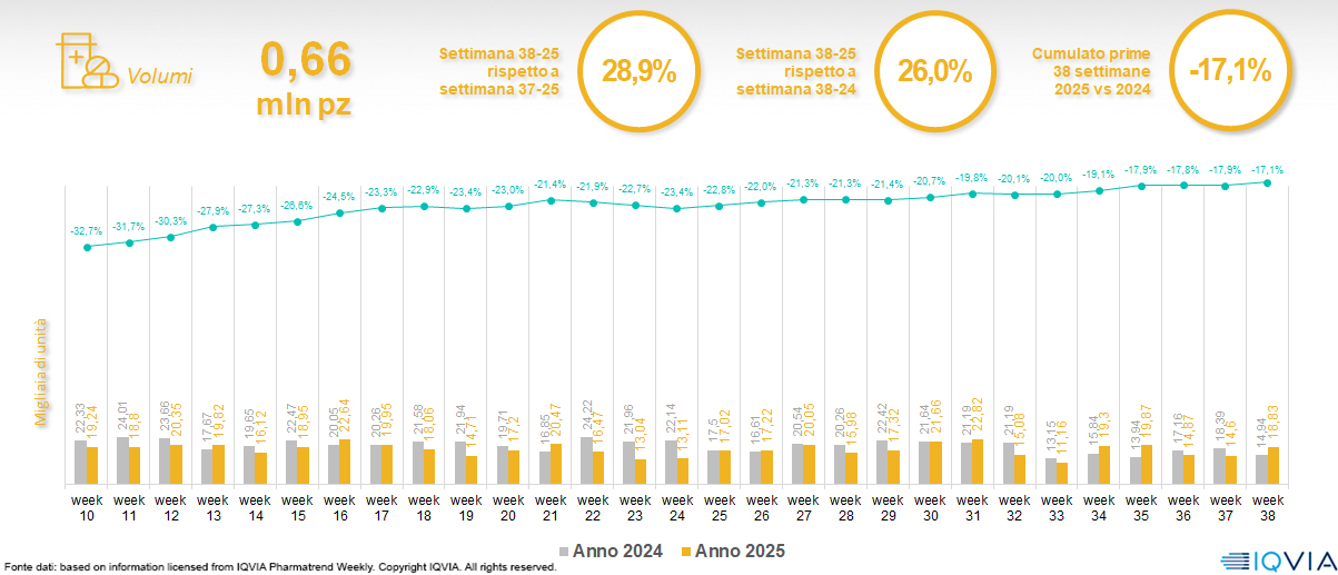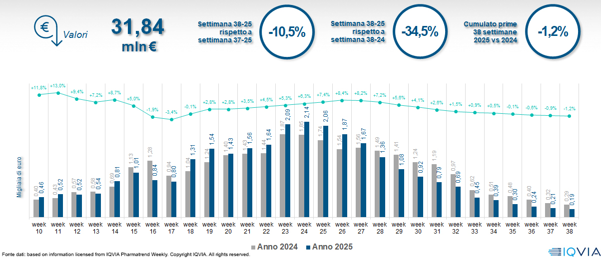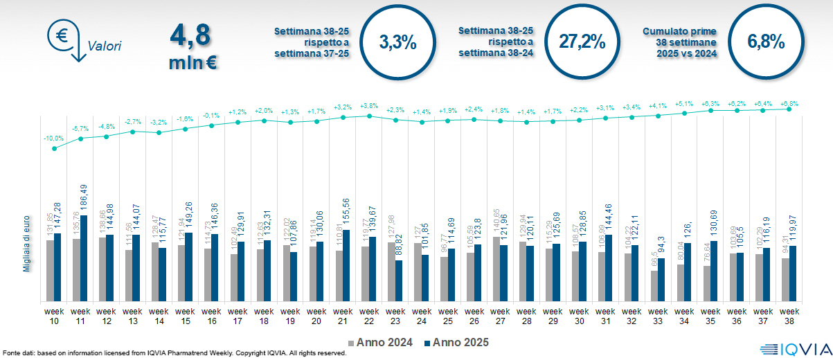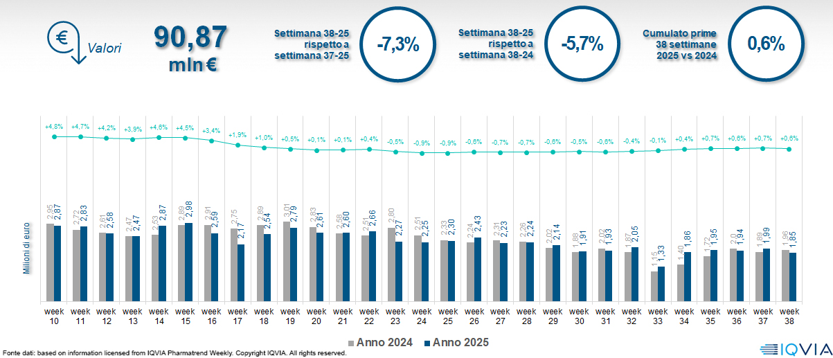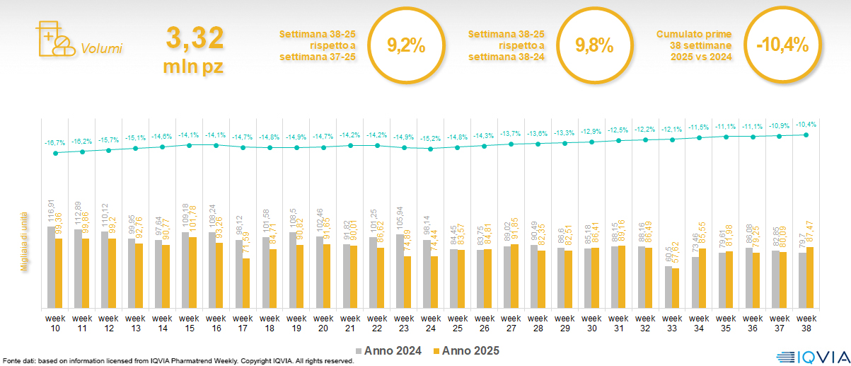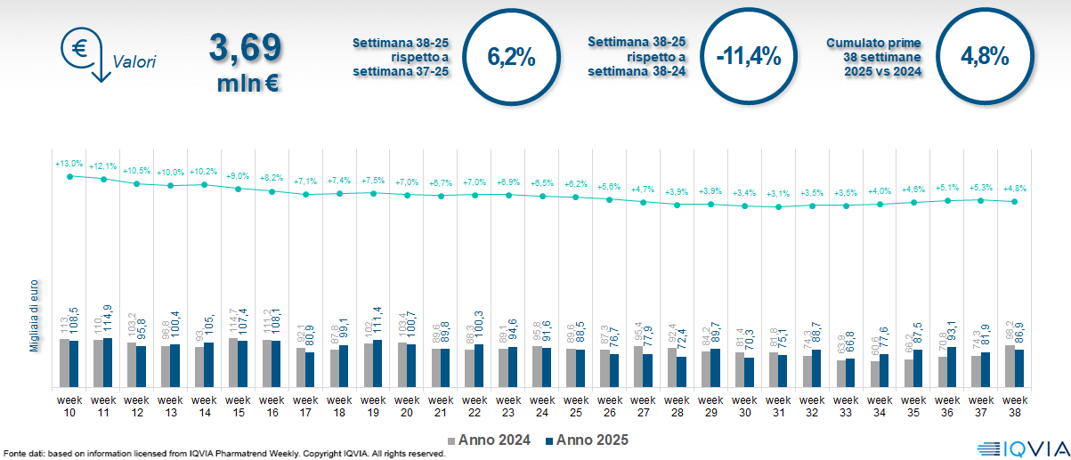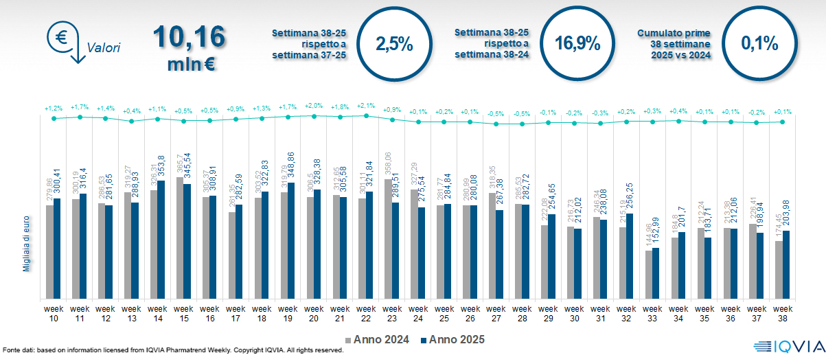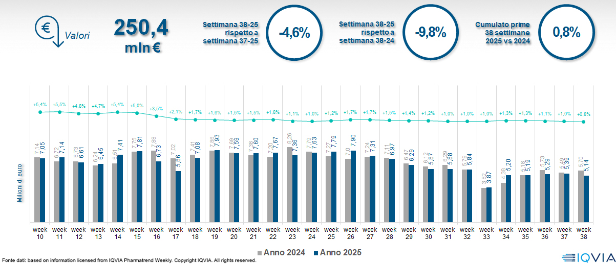 Il mercato online della farmacia alla 38ª settimana del 2025