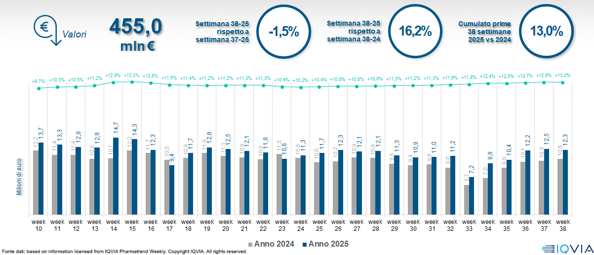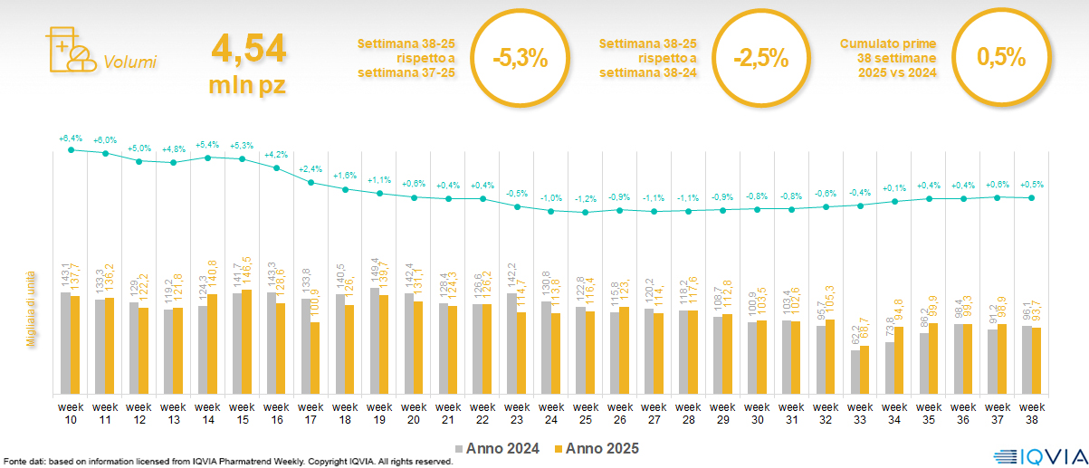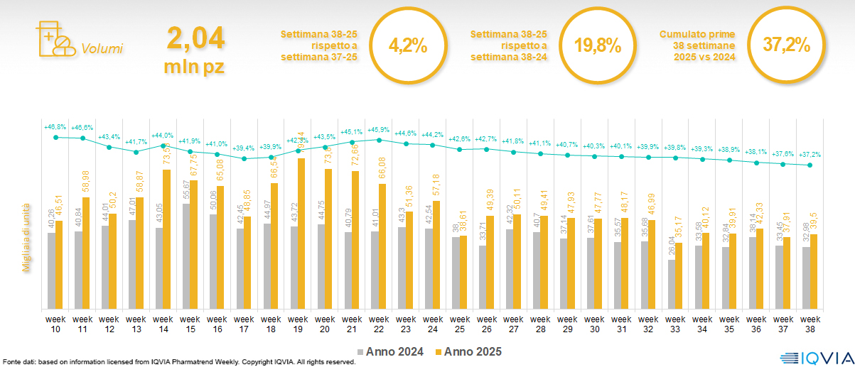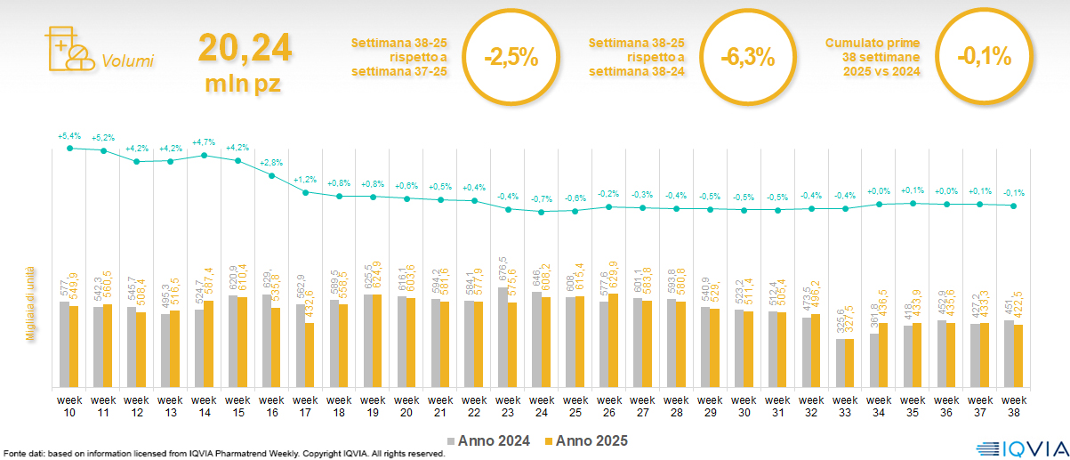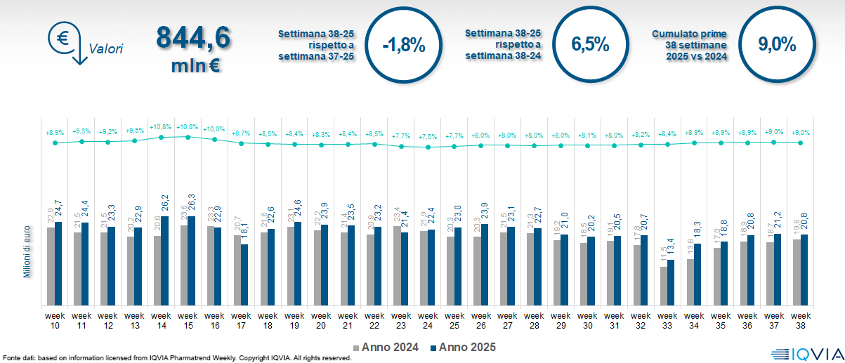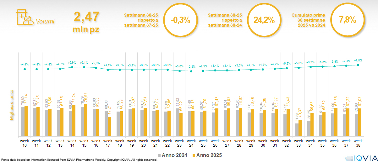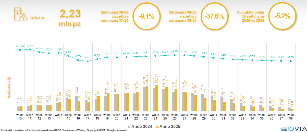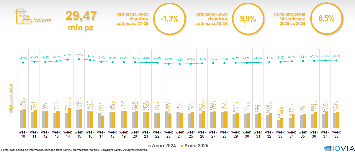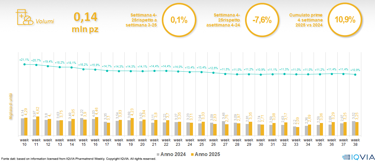 Il mercato online della farmacia alla 38ª settimana del 2025