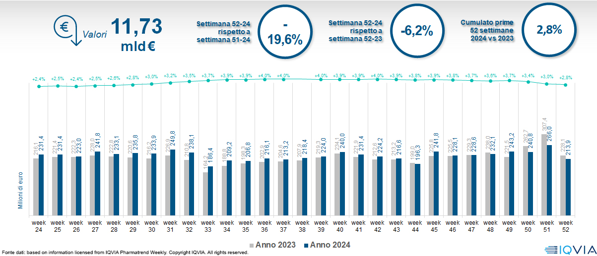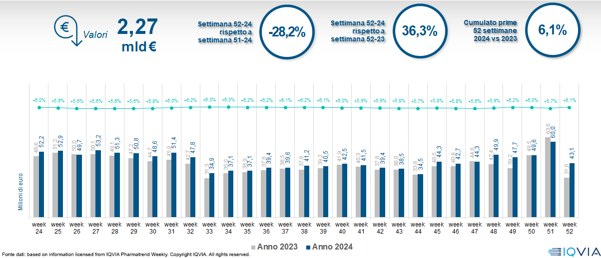 Il mercato della farmacia alla 52ª settimana del 2024