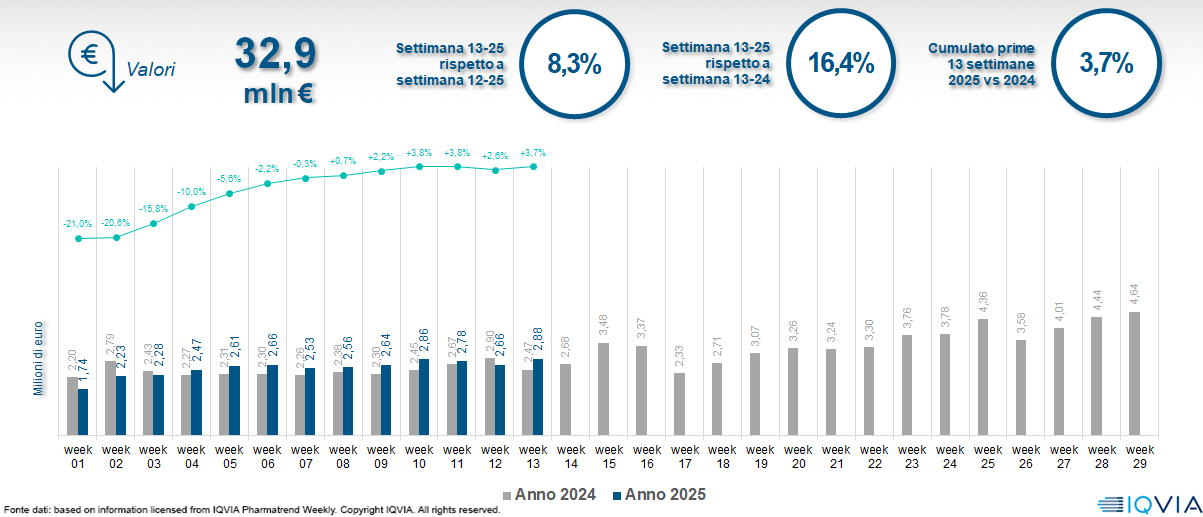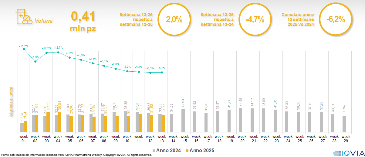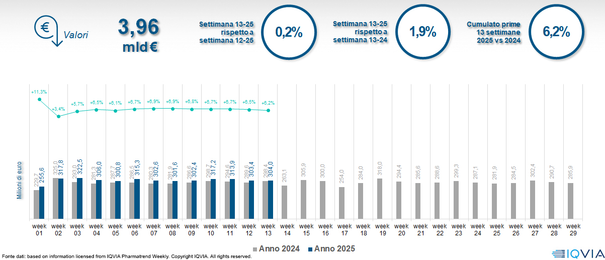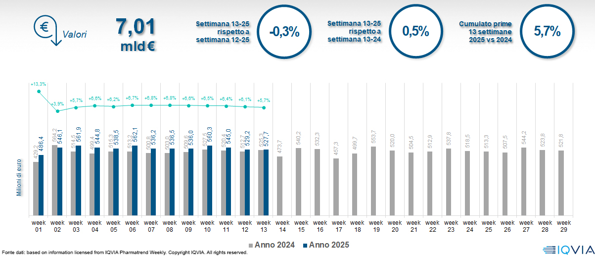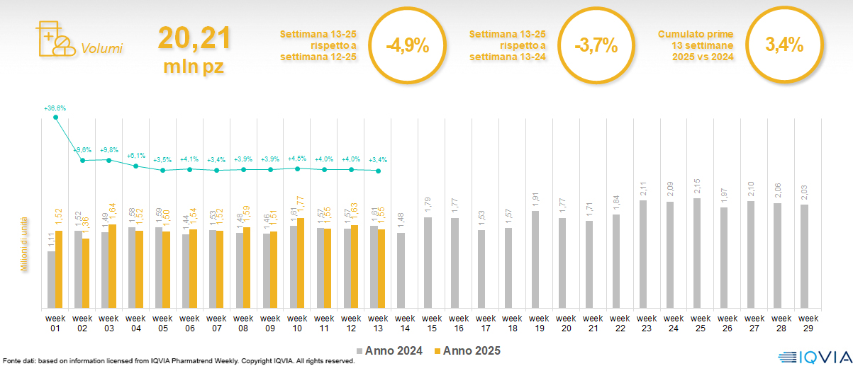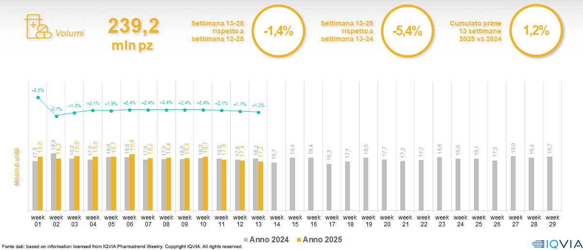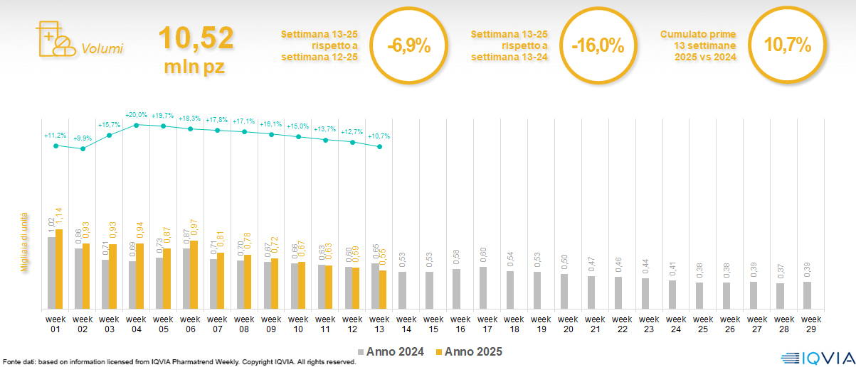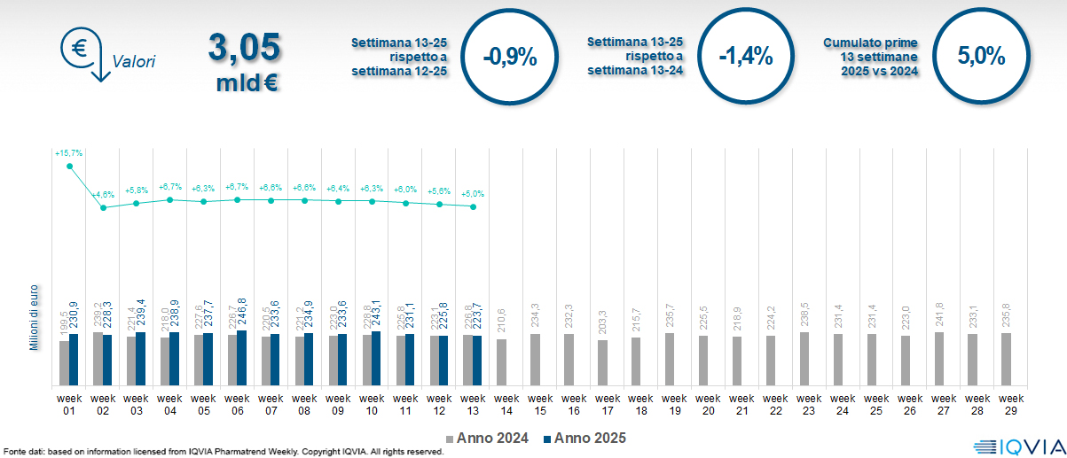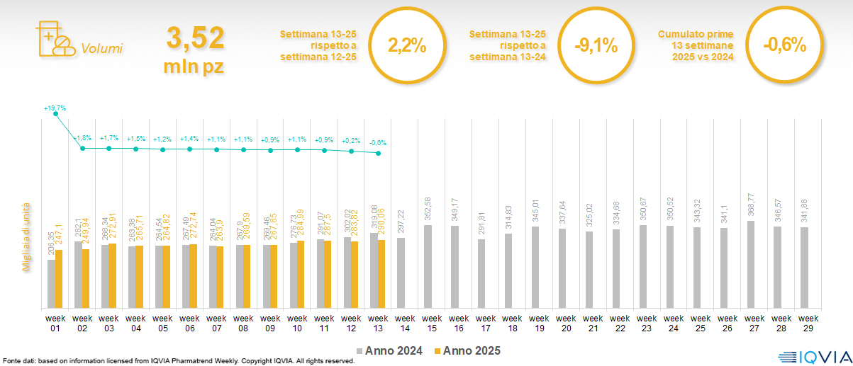 Il mercato della farmacia alla 13ª settimana del 2025