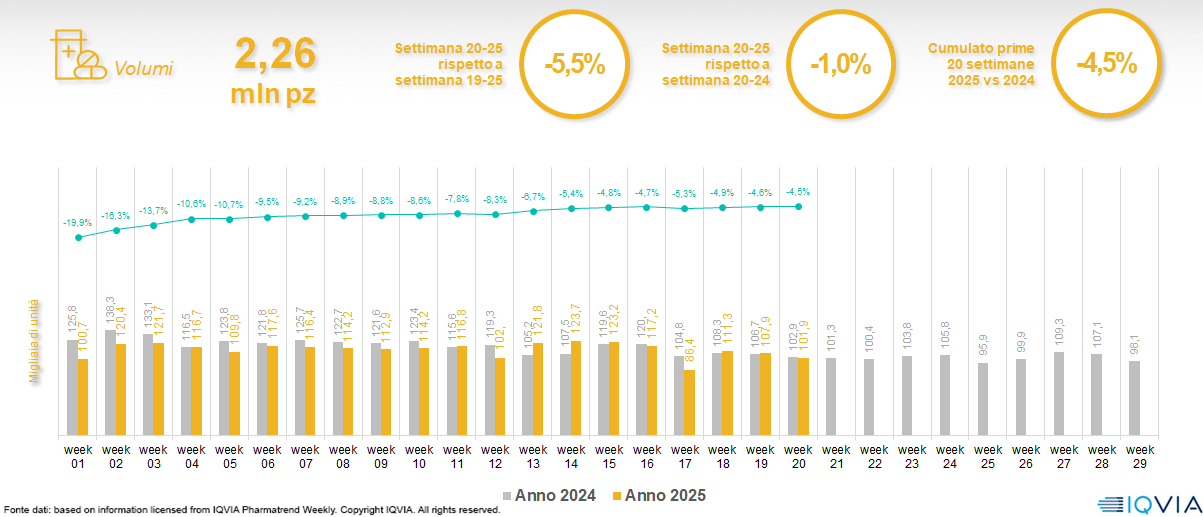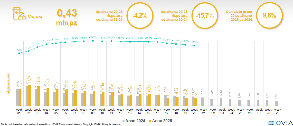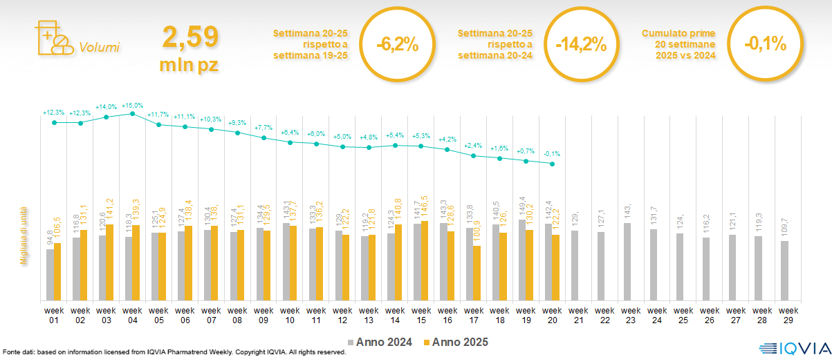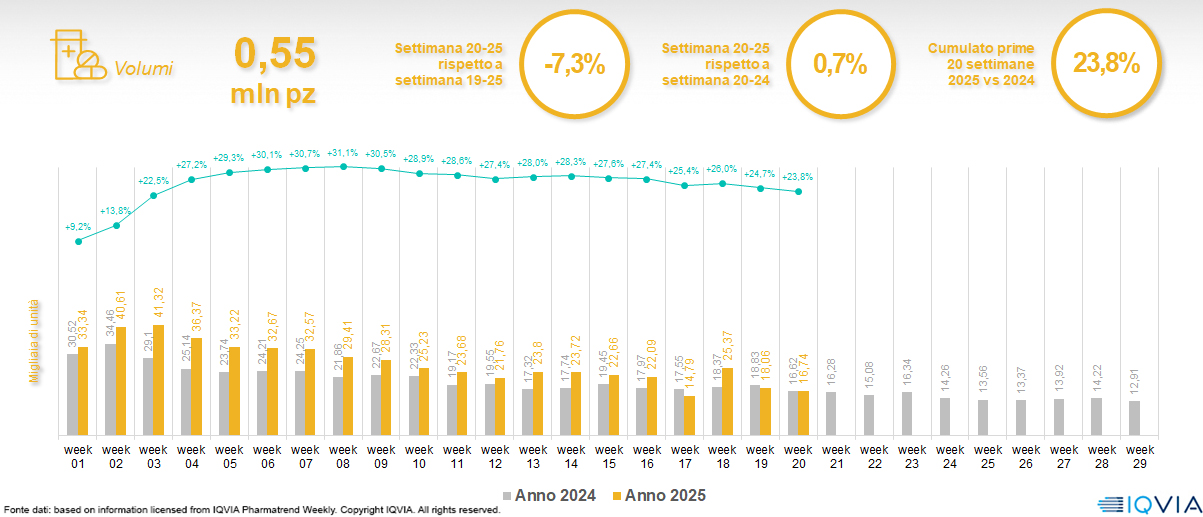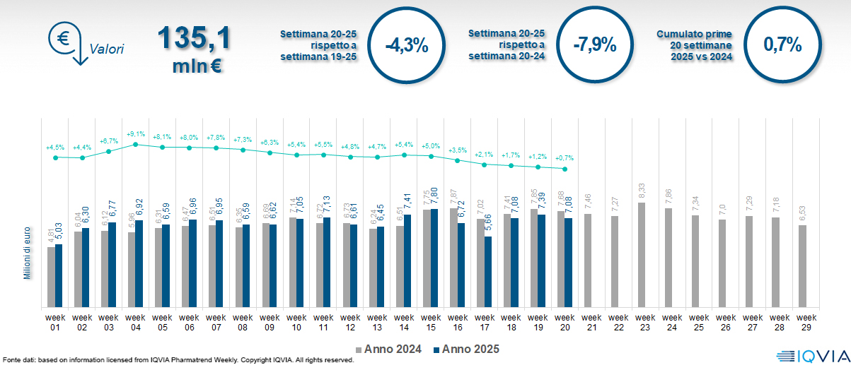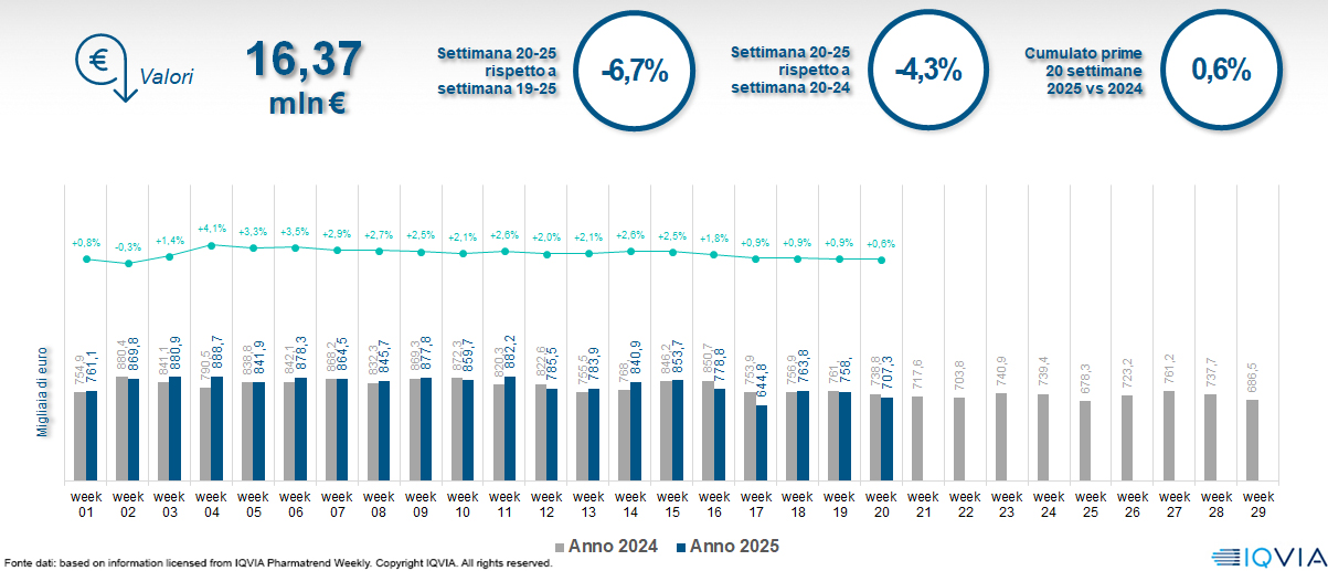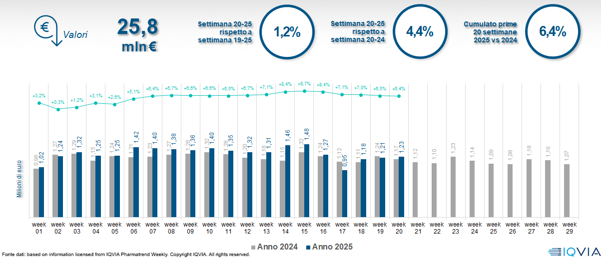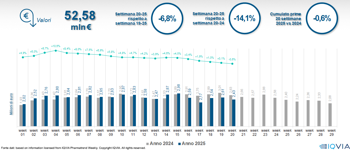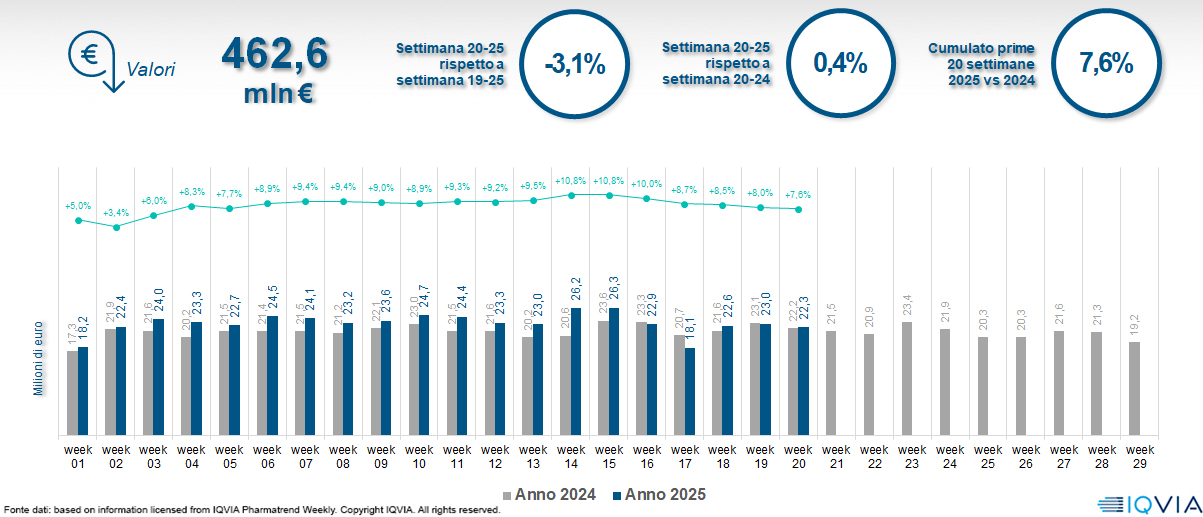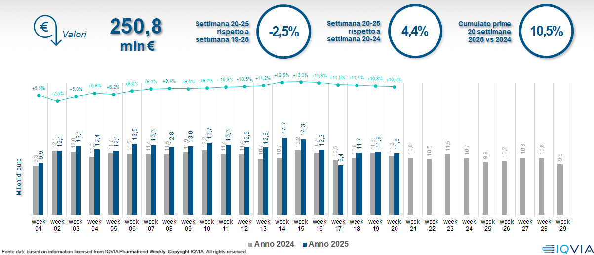Il mercato online della farmacia alla 20ª settimana del 2025