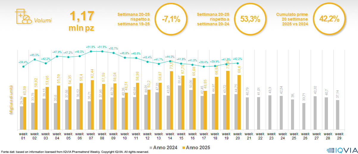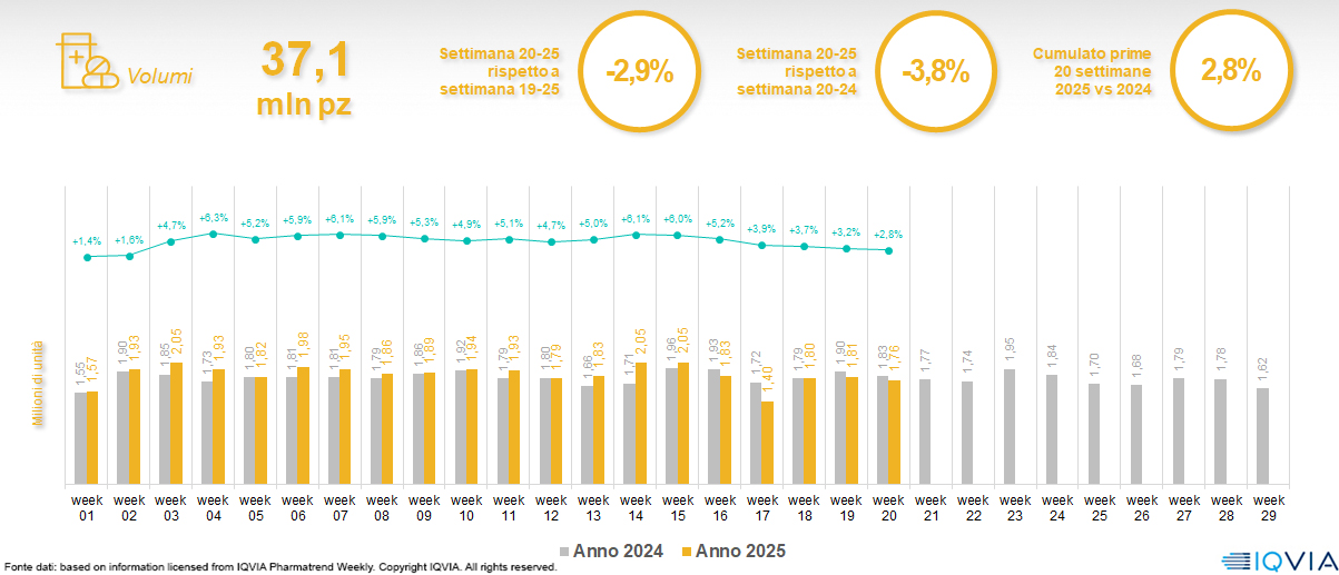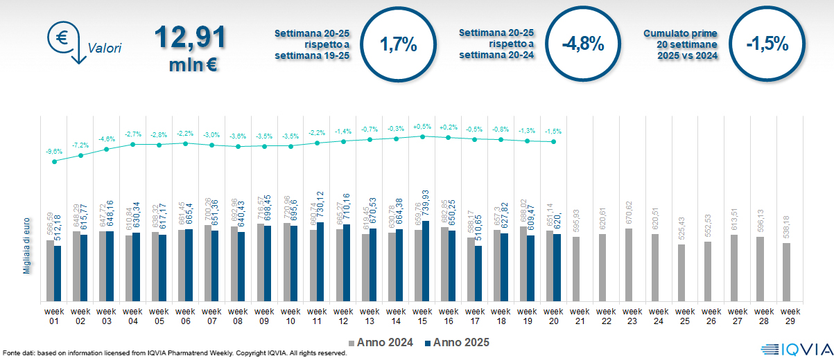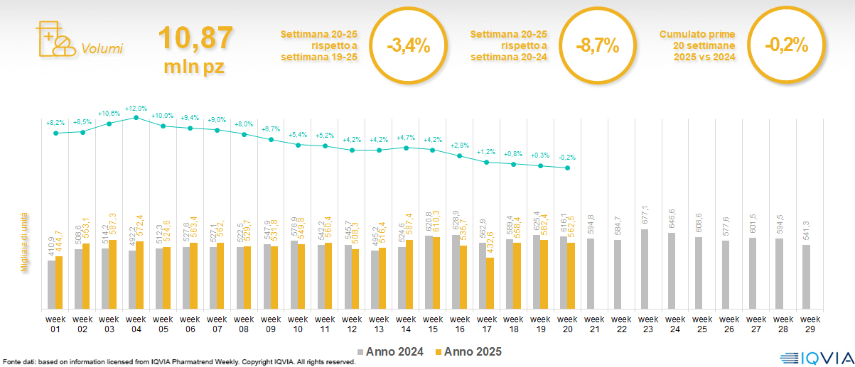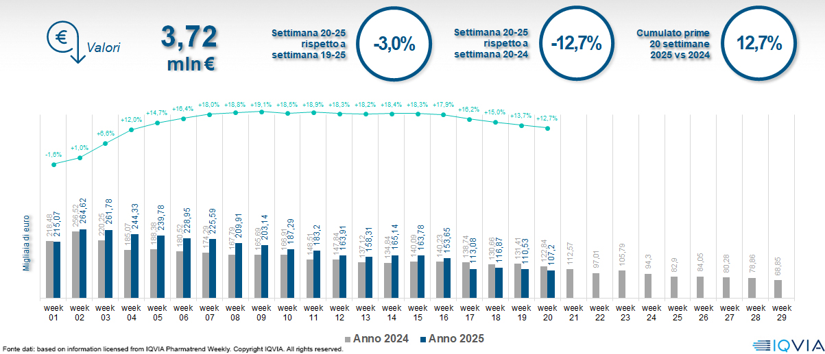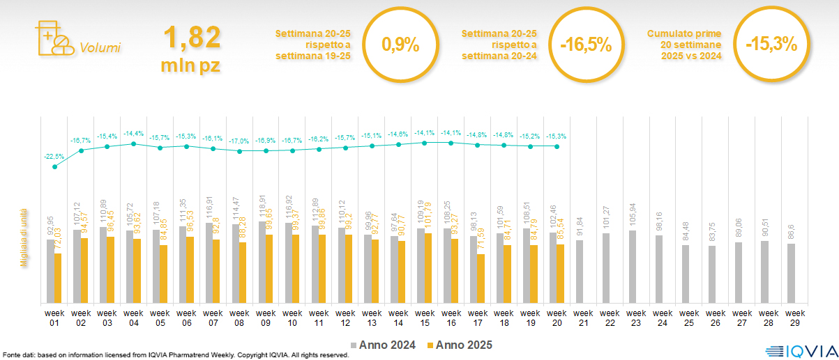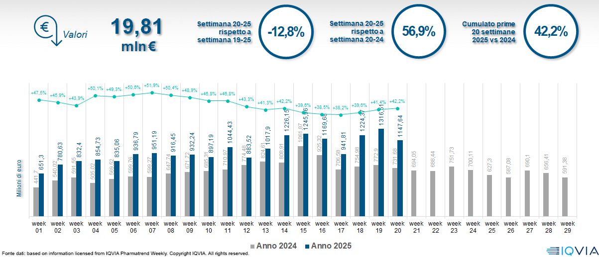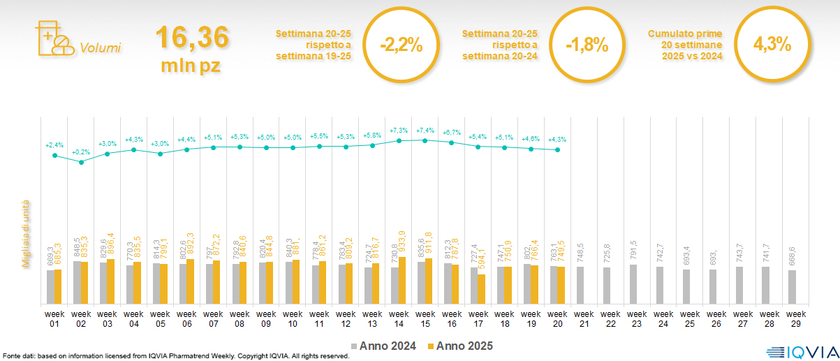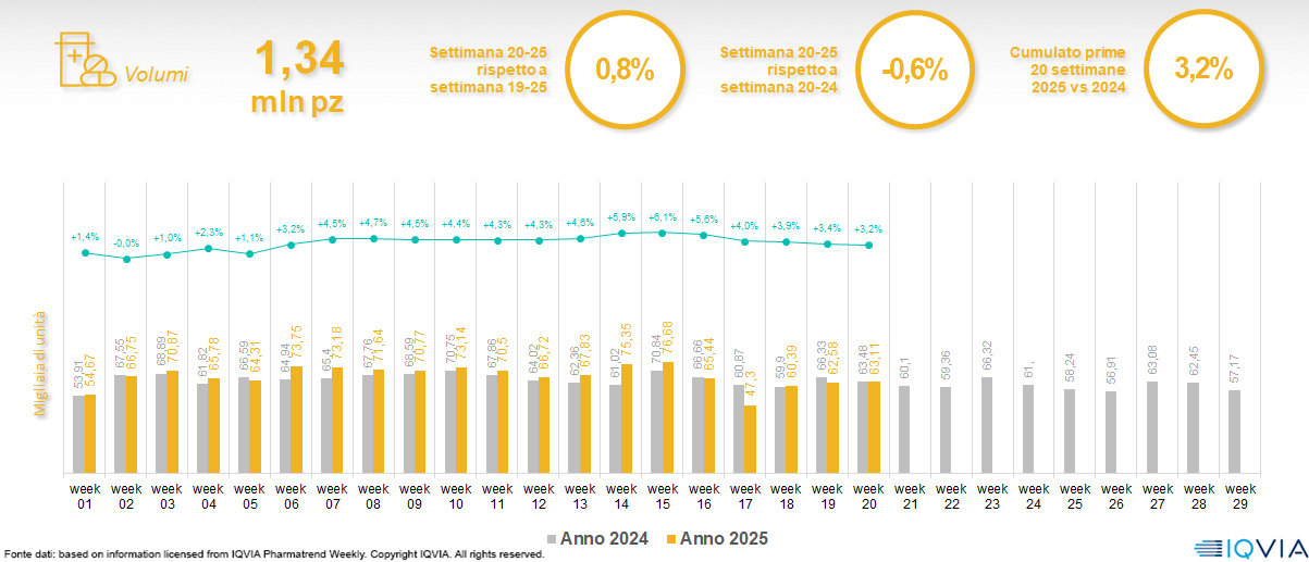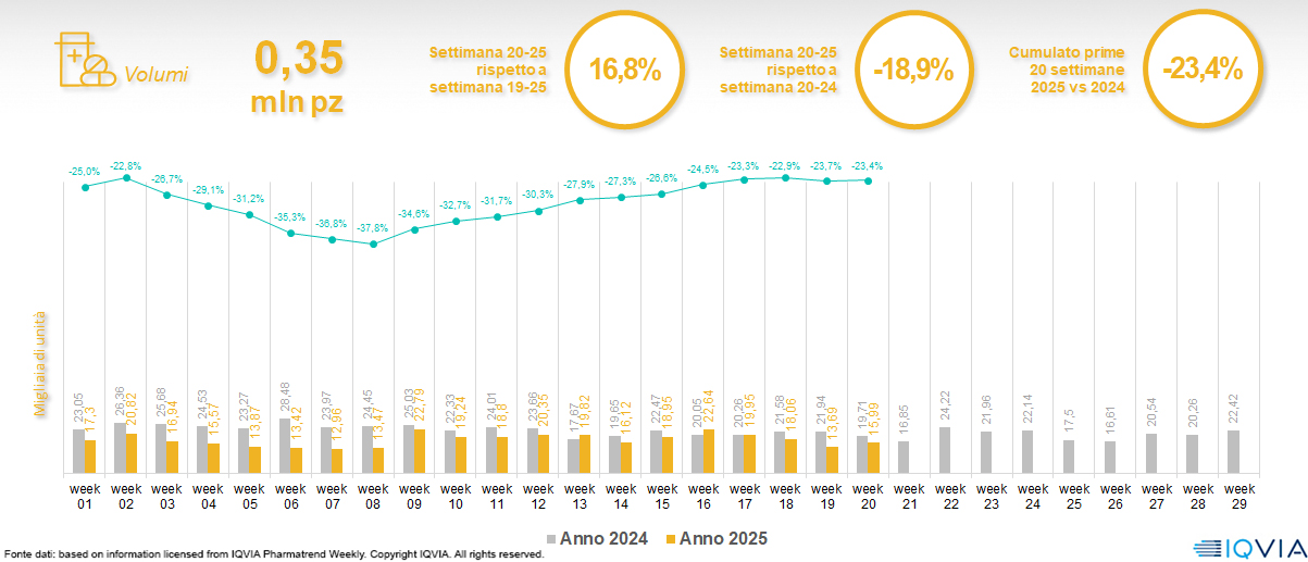 Il mercato online della farmacia alla 20ª settimana del 2025